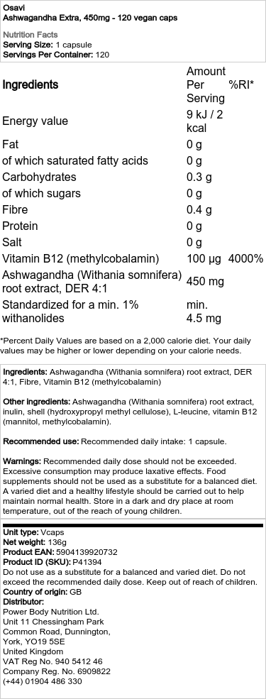 Entdecken Sie Osavi ashwagandha Extrakt, ein natürliches Produkt, das sorgfältig aus hochwertigen Zutaten hergestellt wird. Jede Kapsel enthält 450 mg Ashwagandha-Extrakt und ist speziell für die Verwendung in einer veganen Ernährung formuliert.