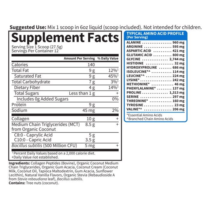 Garden of Life – Grasgefütterter Kollagen-Creamer, cremige Vanille – 330g ist eine exzellente Wahl für alle, die ihren täglichen Getränken und Speisen einen Hauch von Luxus hinzufügen möchten. Dieser Creamer kombiniert den natürlichen Geschmack von cremiger Vanille mit der Feinheit grasgefütterten Kollagens.
