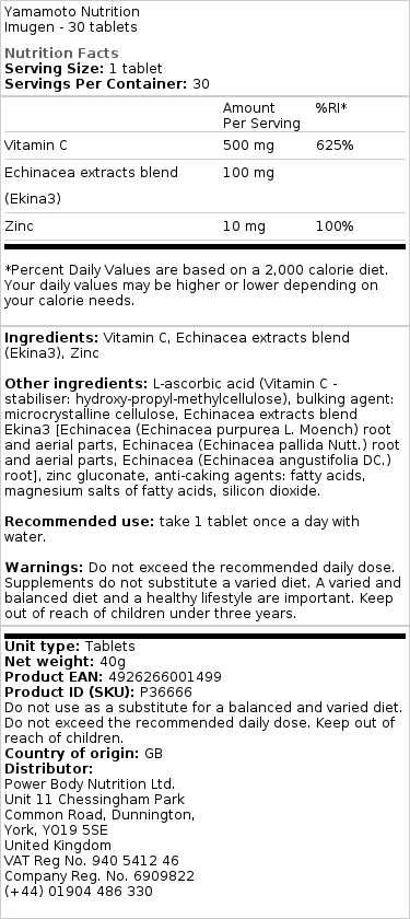 Entdecken Sie Yamamoto Research Imugen,ein Nahrungsergänzungsmittel in praktischer Tablettenform. Dieses Produkt kombiniert hochwertige natürliche Inhaltsstoffe wie Vitamin C, zink und Echinacea-Extrakte. Es ist speziell für alle konzipiert, die Wert auf natürliche komponenten legen.