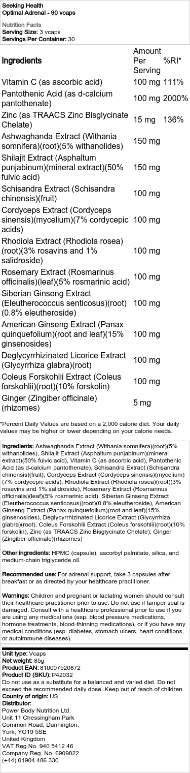Seeking Health – Optimale Nebennieren – 90 vegetarische Kapseln