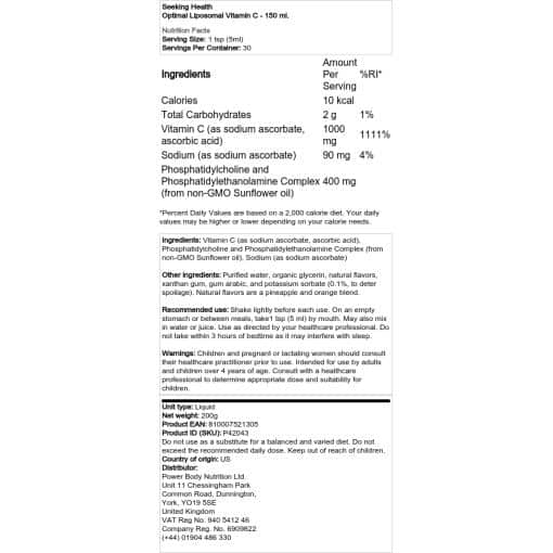 Seeking Health – optimales liposomales Vitamin C – 150 ml