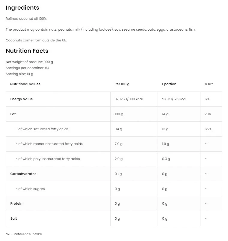 - Hauptinhaltsstoffe: 100% reines Kokosöl ohne Zusätze.