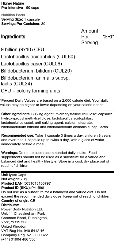 Entdecken Sie die Kraft der Natur mit Higher Nature – Pro-Intensiv. dieses Produkt enthält eine sorgfältig ausgewählte Mischung aus vier probiotischen Stämmen: