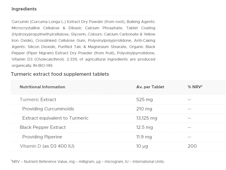 Ultra Turmenic von Vitabiotics enthält ausgewählte natürliche Bestandteile. Die genaue Zusammensetzung ist auf höchste Reinheit und Natürlichkeit ausgelegt, um Ihnen ein Produkt von bester Qualität anbieten zu können.