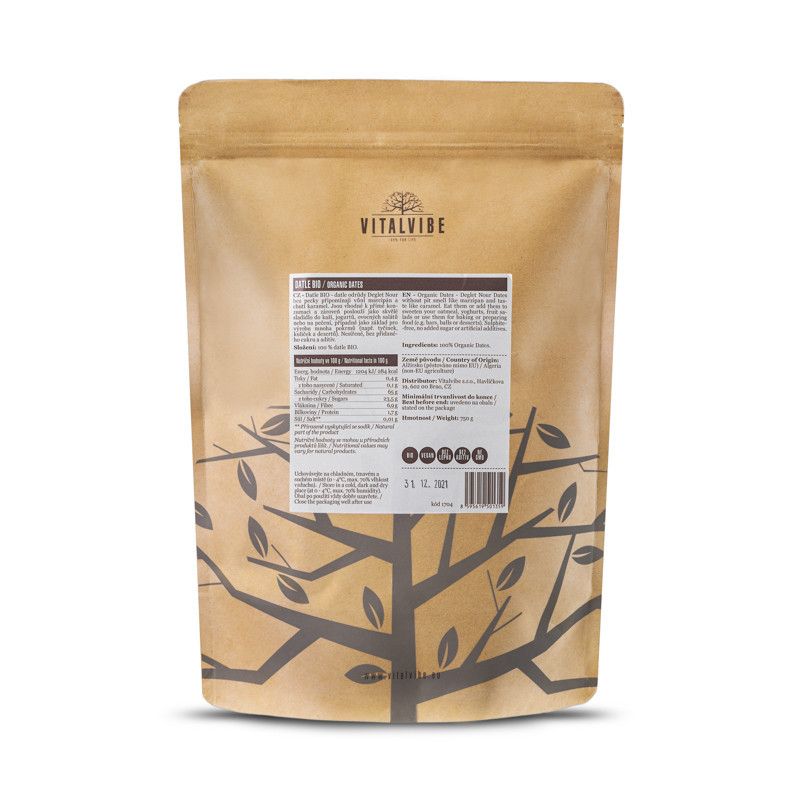 jede Packung enthält reine Bio-Datteln ohne jegliche Zusätze. Die Datteln sind bereits getrocknet und sofort verzehrfertig.